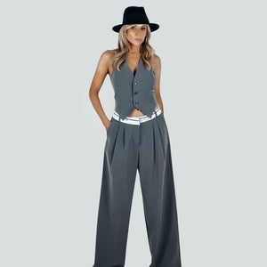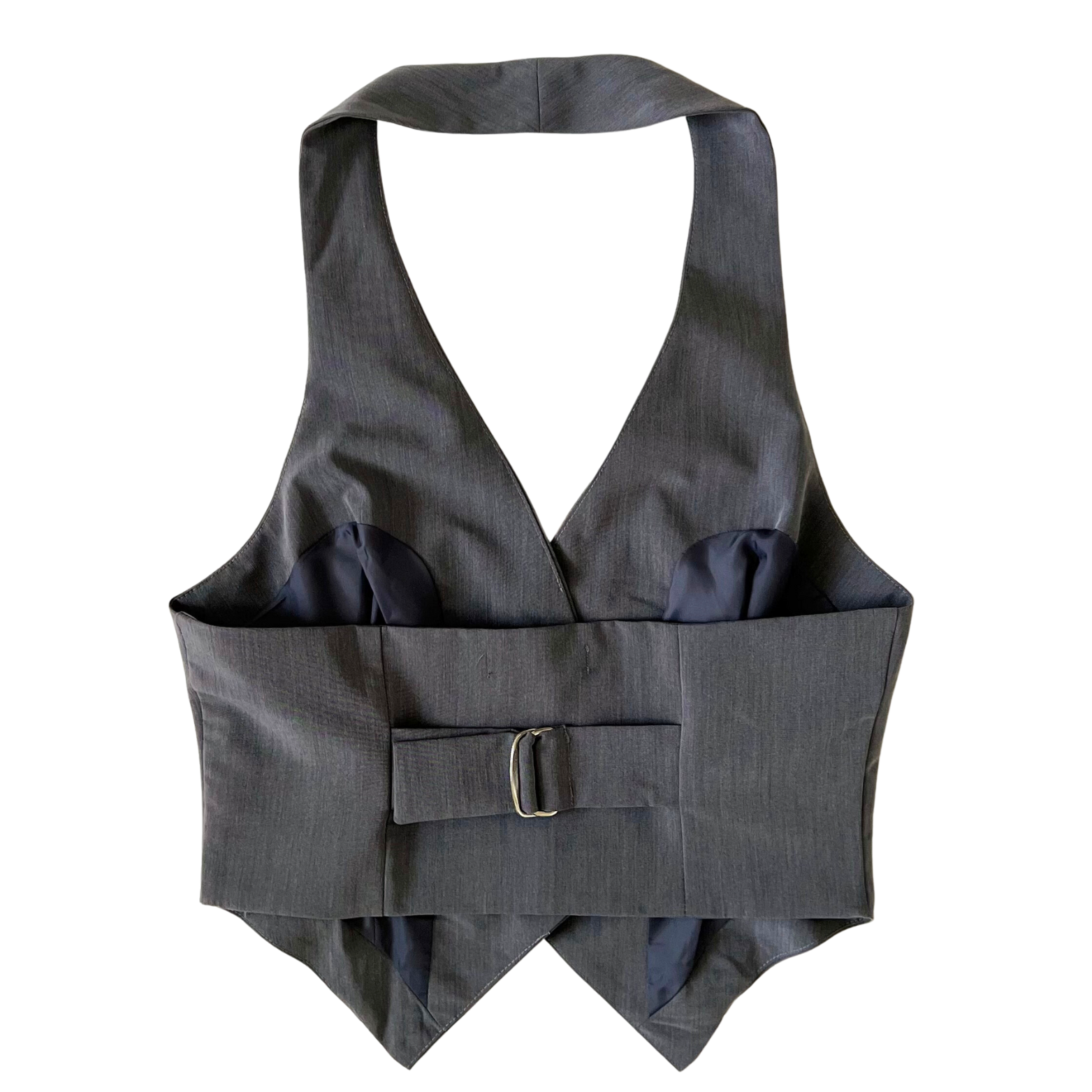 There's just something about the power of mens inspired suiting for women. Halter style vest features adjustable back strap so you control the fit. Lined. Pair with the Toni Montana Pant for a complete look. Modern, chic, and ultra-cool.